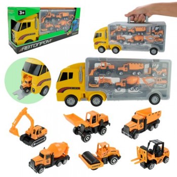 Пластиковый автовоз 34 см с прозрачным кузовом и 6 металлическими машинками размером 7 см. Машинки можно разместить в кабине автовоза, потянуть за рычажок, и наблюдать, как они скатываются по горке. Отличный набор для любителей машинок и игр с транспортом!