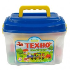 Конструктор 'Техно' в саквояже, 107 элементов, (тип Лего, собираем транспорт, домик). Упакован в кра..